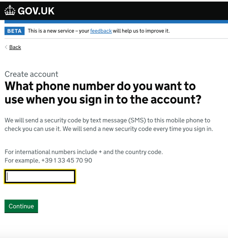 Telefon numaranızın başına +44 alan kodunu eklemeden (07xxx şeklinde) yazıp bir sonraki aşamaya geçebilirsiniz.