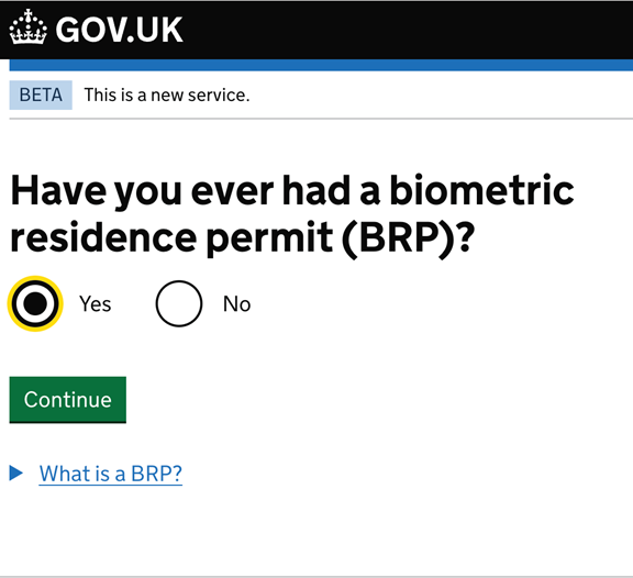 “Şu anda BRP var mı?” sorusunu “Yes” olarak işaretleyim bir sonraki aşama için ilerleyelim.