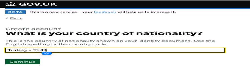 Uyruk bilgisini de ekledikten sonra başvurumuza devam ediyoruz.